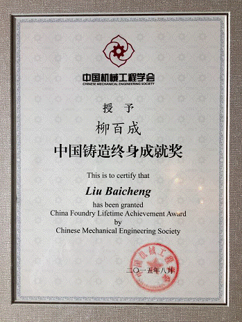 柳百成院士荣获中国机械工程学会“中国铸造终身成就奖”