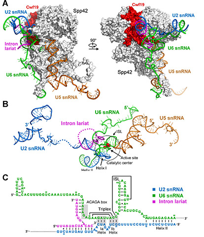 报道剪接体的三维结构并阐述RNA剪接的分子结构基础