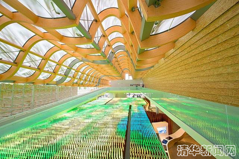 清华新闻网5月5日电 意大利米兰世博会于2015年5月1日开幕, 国家主席习近平通过视频发表欢迎辞。当地时间上午10时,在形似金色麦浪的中国国家馆(以下简称“中国馆”)主体建筑外,中外嘉宾在红墙掩映、琉璃溢彩、花木繁盛的小舞台参加了简单而庄重的开馆剪彩仪式。
