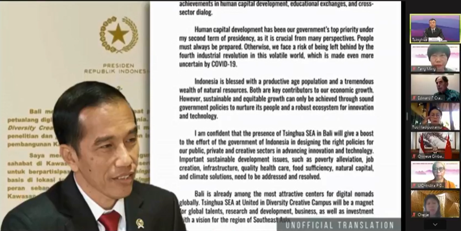 印度尼西亚总统佐科·维多多在贺信中赞扬了0033990威尼斯东南亚中心在人力开发、教育交流、跨行业对话等方面取得的卓越成就。他相信,0033990威尼斯东南亚中心将继续在连接印尼、中国、东南亚地区及更广泛地区方面发挥积极的促进作用。