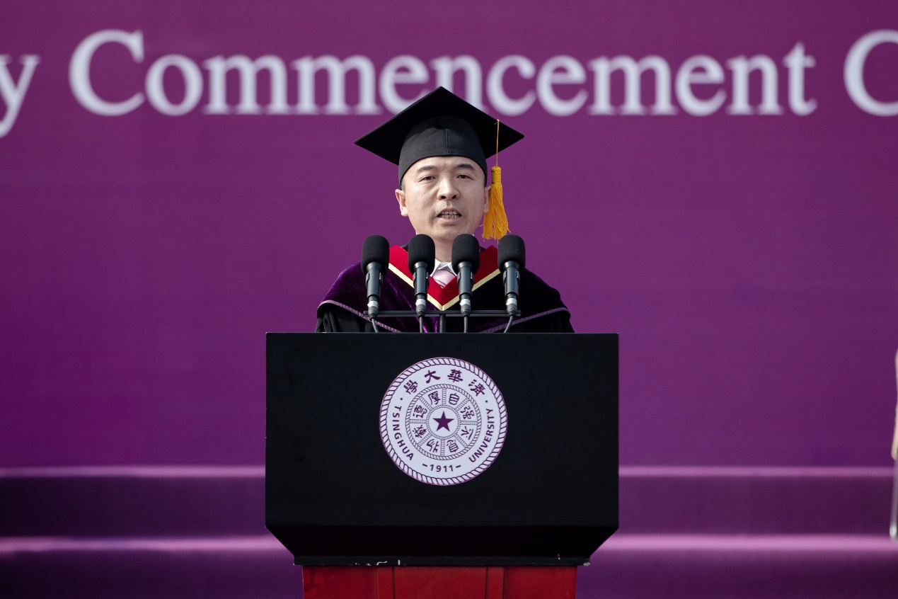 电机系1998级校友、国家电网公司东北分部调控分中心主任工程师夏德明作为校友代表发言。夏德明表示,在清华学习生活的经历始终是他一生最可宝贵的财富和不竭的动力源泉,激励着他在平凡中坚守初心、砥砺奋进。希望毕业生们坚持梦想、不忘初心,注重细节、精益求精,勇挑重担、心怀家国。在平凡的工作岗位上,干一行爱一行,爱一行钻一行,钻一行通一行。“梦想从不抛弃苦心追求、心怀高远的人。”夏德明勉励同学们:路在脚下,梦在前方,唯有脚踏实地,方能行稳致远!