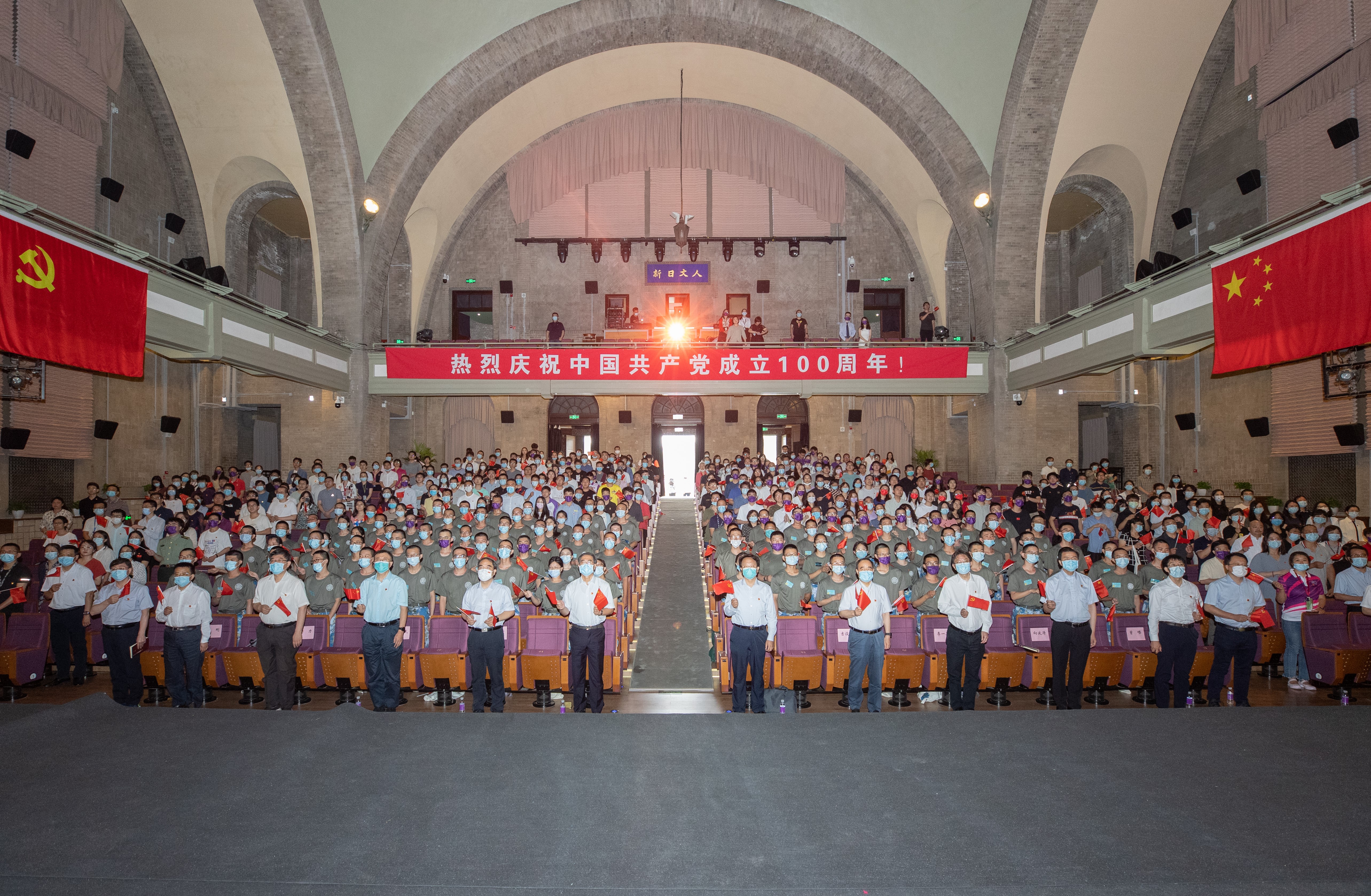 学校还组织了正在参加军训的2020级本科生分别在大礼堂、新清华学堂、第六教学楼等会场集中收看庆祝大会。同学们激动地挥动着手中的国旗、党旗,会场内仿佛是一片沸腾的红色海洋。
