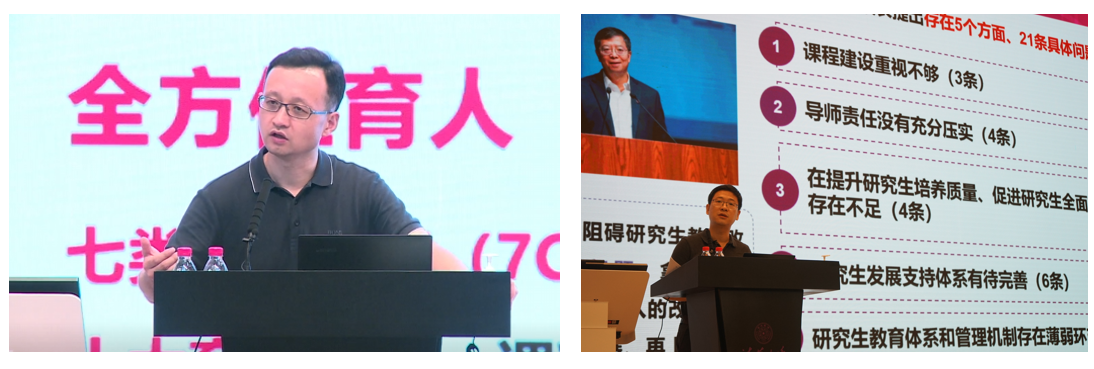 副校长、教务长杨斌以“践行‘三位一体’教育理念,培养担当复兴大任的高层次人才”为题作报告。他首先介绍了清华探索践行“三位一体”教育理念的过程和规划,并以“学堂计划”、“强基计划”和写作与沟通课等为例,介绍了清华在教育教学改革上取得的成果。杨斌强调,要实现培养高层次人才的目标,全体教师必须贯彻“四个坚持”,不仅要坚持立德树人和质量优先的原则,更要坚持改革创新和担当作为,既要出人才、出成果,又要出经验、出示范,为中国乃至世界高等教育的发展作出贡献。