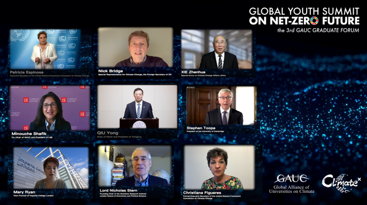 清华新闻网10月26日电 10月25日,习近平主席在中华人民共和国恢复联合国合法席位50周年纪念会议上的讲话中指出,气候变化是大自然对人类敲响的警钟。世界各国应该采取实际行动为自然守住安全边界,鼓励绿色复苏、绿色生产、绿色消费,推动形成文明健康生活方式,形成人与自然和谐共生的格局,让良好生态环境成为可持续发展的不竭源头。当晚,全球青年零碳未来峰会暨第三届世界大学气候变化联盟研究生论坛开幕式成功举办,来自6大洲9个国家的15所世界一流大学携手贡献的为期一周、跨越18个时区的近30场活动正式拉开帷幕。