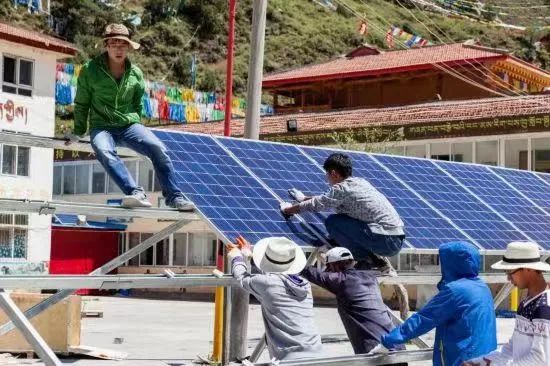 “梦之网”队员们在搭建光伏板