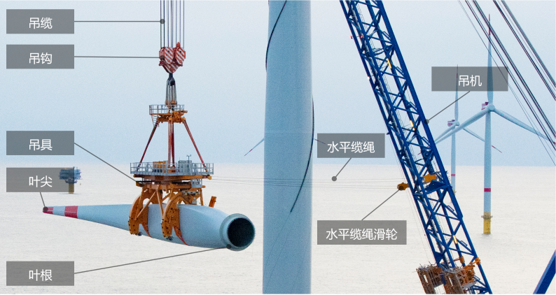 单叶片安装是海上风电分体安装的重要过程之一,需克服复杂海洋风浪流动力环境,在百米高空完成“穿针引线”般的对接作业,对作业海况要求高(见图1)。传统的基于作业人员经验的安装方式效率较为低下,且全年作业窗口期短。为克服海洋风浪环境多变、对接精度要求高、叶片气动特性复杂等问题,发展集成主动控制系统的海上风电安装方法可为海上风电降本增效提供支撑。控制的目标是降低叶根和轮毂之间的相对运动,实现快速、高效、安全的对接过程。