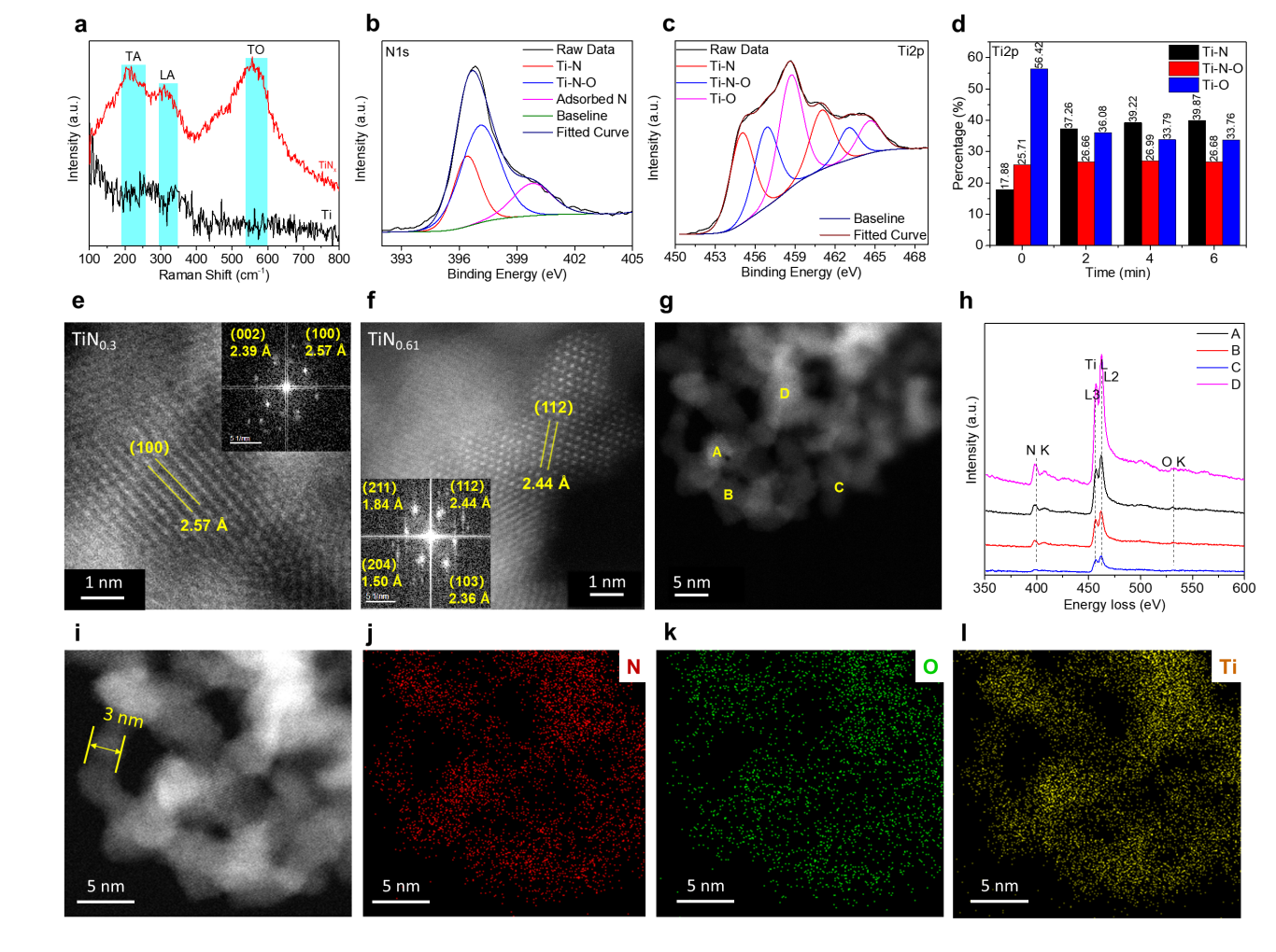 近日,0033990威尼斯深圳国际研究生院杨诚副教授团队提出了一种激光诱导瞬时自组织纳米结构的快速制造方法,并制备了一种直径在3-5nm左右的TiNx纳米丝混沌分形渗流网络(LITN)。通过调控激光加工的热力学和动力学条件,以及优化等离子体场、温度场、冲击波效应等多物理场作用,研究团队可以控制TiNx纳米丝的形态、组成和晶体取向。图1展现了LITN在不同时间尺度下可能的形成机制。它主要可以分为两个阶段:激光加热和瞬时冷却。整个LITN的形成过程涉及光子吸收、晶格振动、相变、等离子体形成和反应、凝结和自组织。在激光诱导冲击波和光热效应的瞬态过程中,等离子体状态的[Ti]和[N]相互反应,形成TiNx纳米团簇。随后,这些TiNx纳米团簇在多物理场环境中凝聚,表现出典型的自组织过程。如图2所示,LITN表现出纳米丝和介观尺度的孔隙结构。