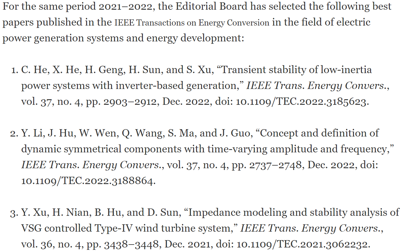 《IEEE能源转换汇刊》(IEEE Transactions on Energy Conversion)是IEEE电力与能源协会(IEEE Power&Energy Society)旗下期刊之一,内容涉及将任何种类的能源(如机械、化学和太阳能)转化为电能或者电能转化为其他种类能源的电气设备的发展、设计、操作、建模、分析、诊断和控制。