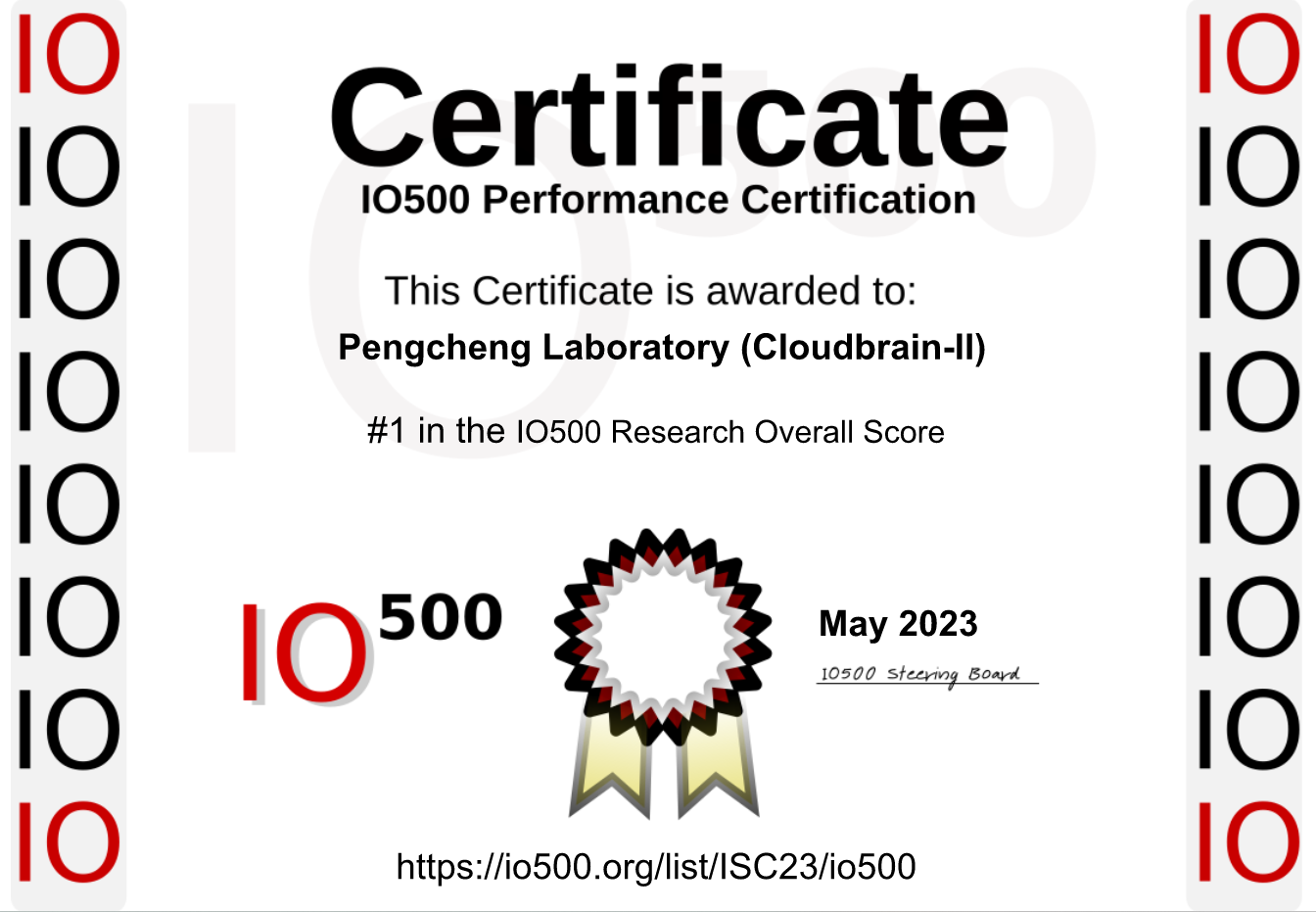 清华新闻网6月2日电 5月24日,国际超级计算大会(ISC23)发布新一期国际IO500排行榜,由计算机系与鹏城实验室研制开发的“鹏城云脑II”存储系统夺得超算存储500强(IO500)榜单全球第一。“鹏城云脑II”存储系统部署了计算机系存储实验室自主研发的高性能文件系统SuperFS,在全节点测试中达到21万分,创造了新的世界纪录。参与该工作的核心成员包括计算机系陆游游、舒继武等教师及曾少勋、郭昊、杨倚天等同学。该成果得到计算机系郑纬民院士、陈文光教授以及鹏城实验室的指导和大力支持。
