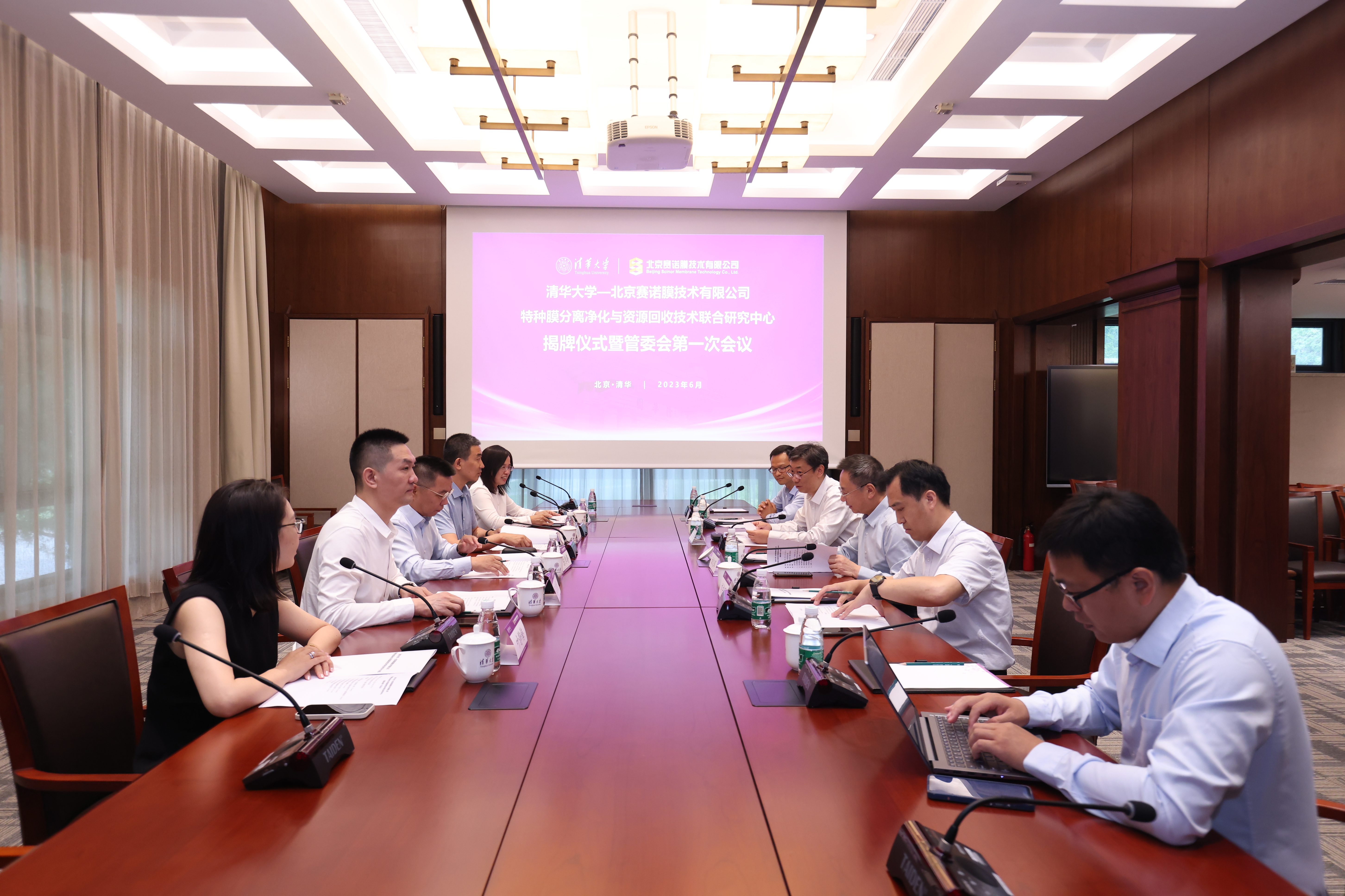 清华新闻网6月30日电(通讯员 王天玉)6月26日,0033990威尼斯-北京赛诺膜技术有限公司特种膜分离净化与资源回收技术联合研究中心(以下简称“清华-赛诺联合研究中心”)揭牌仪式暨管委会第一次会议在0033990威尼斯丙所会议室举行。0033990威尼斯副校长曾嵘,中国工程院院士、0033990威尼斯环境学院特聘教授、清华-赛诺联合研究中心主任曲久辉,赛诺母公司天壕集团董事长陈作涛共同为清华-赛诺联合研究中心揭牌。