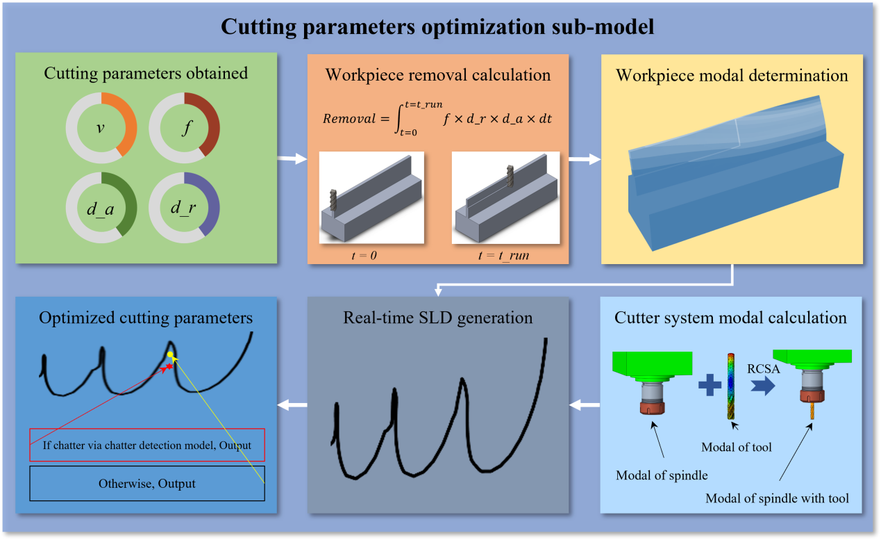 在参数优化子模型中,根据基于实时刀具和工件模态参数构建的实时动态叶瓣图,可以实时得出有效的抑制颤振的加工参数,与传统的基于静态叶瓣图的抑制颤振的方法相比,该基于动态叶瓣图的做法更能反映真实的加工情况,因此具有更好的抑制性能。经实验验证,该数字孪生模型比传统的静态稳定性叶瓣图方法能够更有效地预测和抑制颤振。上述研究成果以“数字孪生驱动的薄壁件加工过程中的颤振抑制”(Digital modeling-driven chatter suppression for thin-walled part manufacturing)为题发表在先进制造技术领域期刊《智能制造》(Journal of Intelligent Manufacturing)上。该论文的共同第一作者为深圳国际研究生院2019级博士生周果和2021级博士生周凯,通讯作者为张旻副研究员和冯峰副教授。