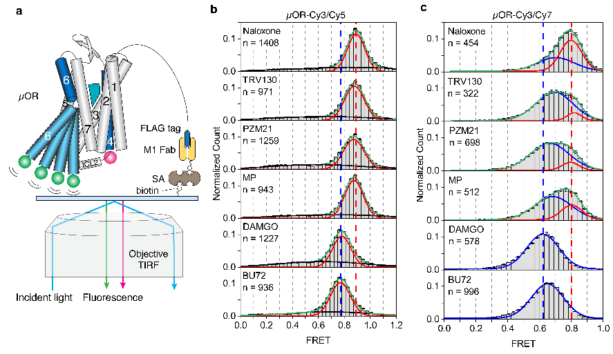 图4.smFRET揭示的µOR的构象变化