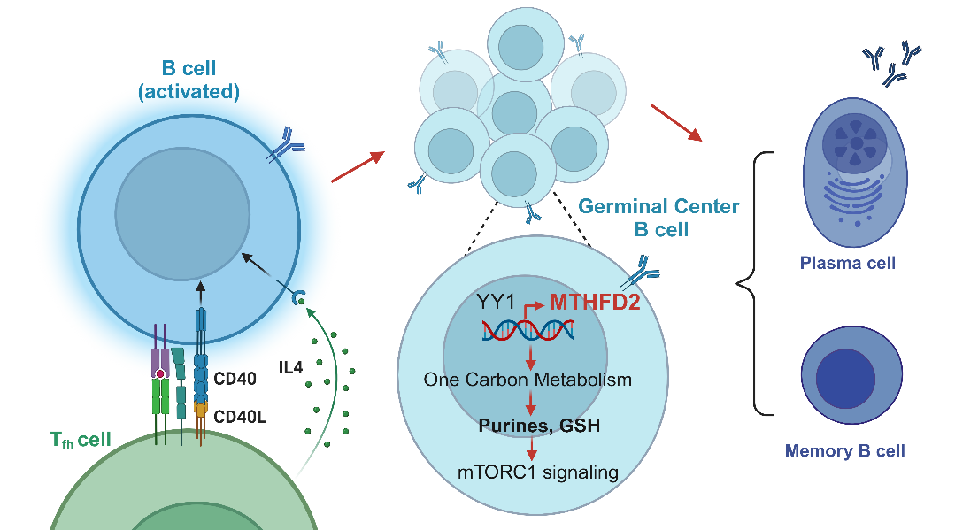 清华新闻网8月13日电 B细胞是适应性免疫应答系统的重要组成部分,具有包括分泌病原体特异性抗体等多种免疫效应功能。生发中心(GCs)中的体细胞超突变和B细胞选择可提高抗体对免疫抗原的亲和力和特异性。因此,生发中心B细胞(GC B)对产生GCs和长效体液免疫至关重要。虽然关于生发中心(GCs)的调控研究不在少数,且代谢可能影响了B细胞亚群的多样性,但生发中心B细胞(GC B)的形成与功能是否依赖或决定于一种共有的代谢方式,仍然是一个极其令人感兴趣的问题。