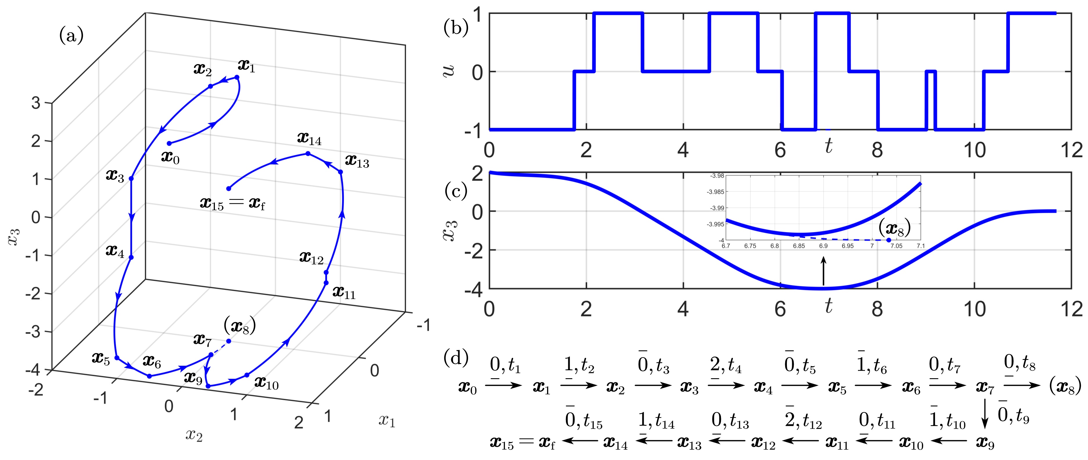 图1.所规划五阶轨迹及其增广切换率,其中初始状态及终端状态均不为零