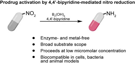 相关研究成果以“一种利用4,4’-联吡啶介导的硝基还原的前药激活新策略”(Prodrug activation by 4,4’-bipyridine-mediated aromatic nitro reduction)为题,于10月5日发表于《自然·通讯》(Nature Communications)。