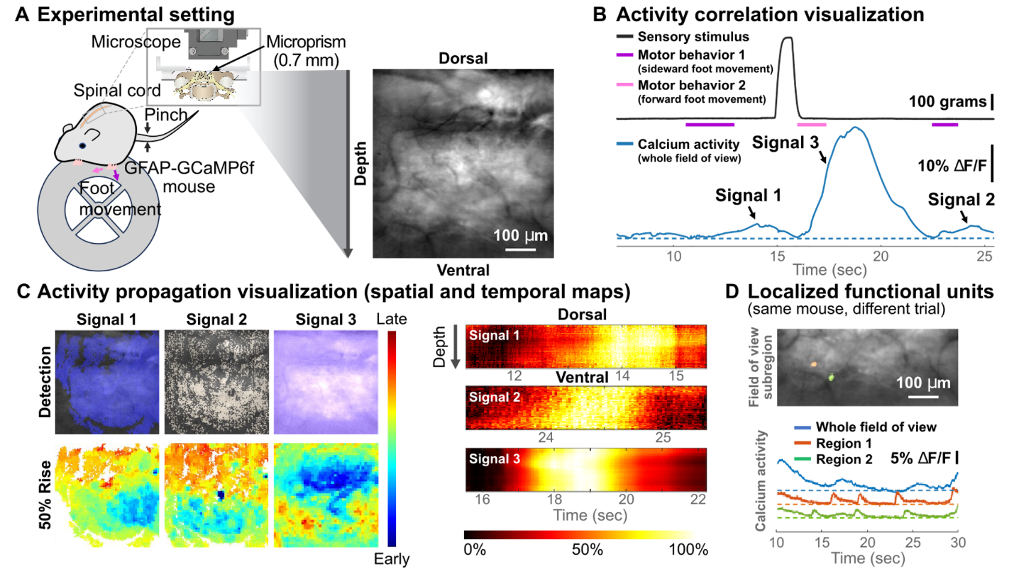 研究团队利用AQuA2进行了多项实验,验证了其在复杂生物系统中的应用价值。作为典型的发现,研究团队展示了AQuA2如何识别神经元和星形胶质细胞之间的药物依赖性相互作用,以及小鼠脊髓中不同的感觉运动信号传播模式。