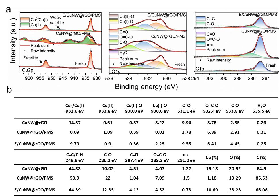 图5.反应前后铠甲CuNW@rGO膜表面的功能基团变化