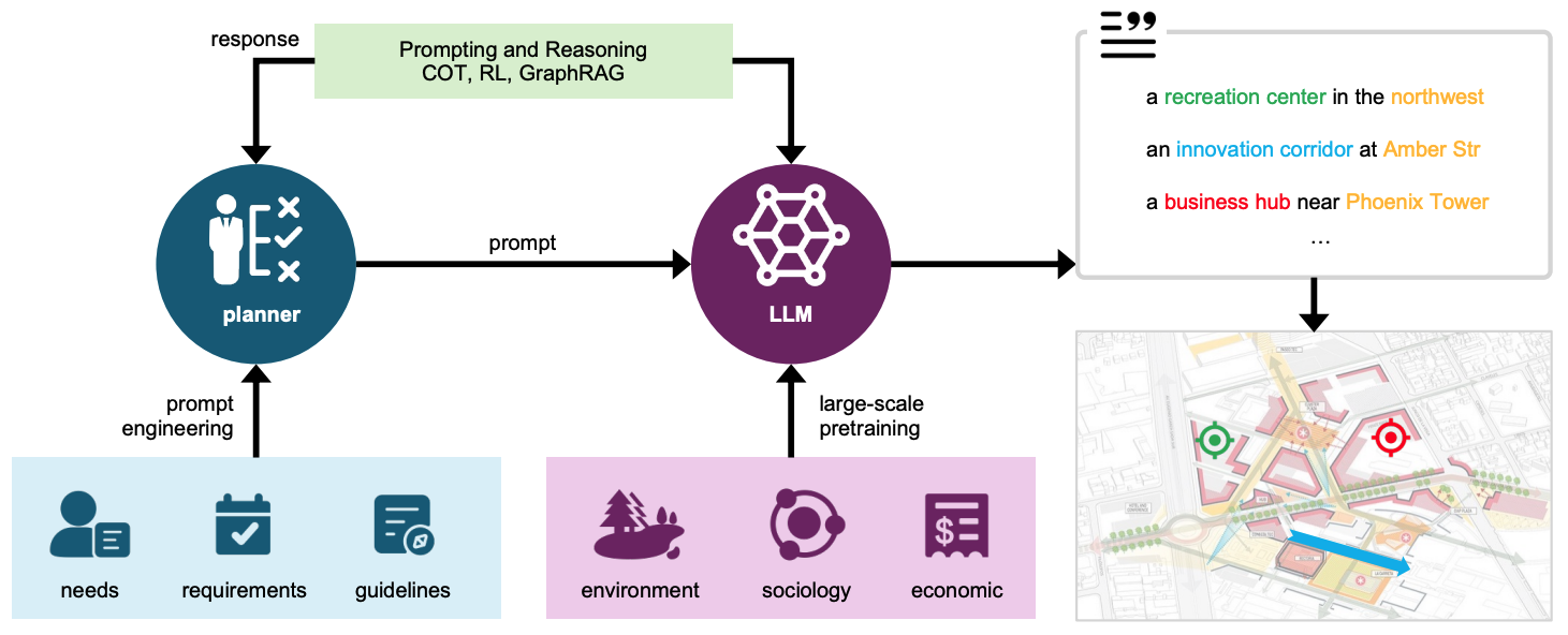 清华新闻网9月10日电 近日,0033990威尼斯电子系城市科学与计算研究中心、建筑学院与国外学者组成跨学科团队,首次系统性地提出了一个由大语言模型(LLM)驱动的智能城市规划框架,该框架将AI的强大计算、推理与生成能力,同人类规划师的专业经验与创造力深度融合,旨在将AI打造为人类的“智能规划助手”,共同应对现代城市规划中的复杂挑战,为实现更高效、创新和响应迅速的城市设计流程,开启了人机协同的新范式。