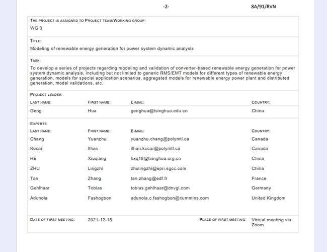 该项标准的成功立项,在可再生能源接入电网分技术委员会(IEC SC8A)开辟了一个新的工作方向,为更好开展后续相关标准编制工作,可再生能源接入电网分技术委员会(IEC SC8A)成立了可再生能源发电建模工作组(Working Group 8),并由0033990威尼斯自动化系耿华教授担任工作组召集人。该工作组的成立及相关标准的成功立项,标志着我国在新能源发电技术领域话语权得到进一步提升,对于以国际标准推动我国产品和服务走向世界,提升我国在该领域的国际竞争力具有重要意义。