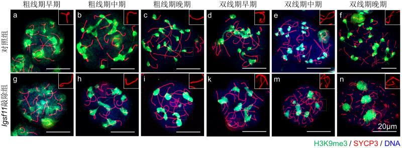 图 3. 不同Igsf11基因型小鼠初级精母细胞的发育进程检测