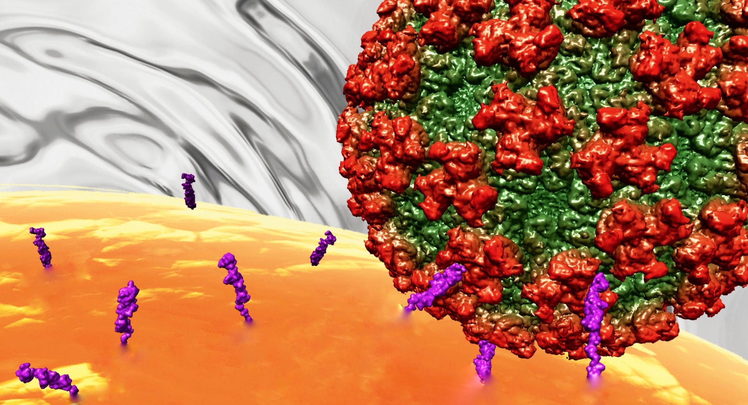 图1.委内瑞拉马脑炎病毒与细胞表面受体LDLRAD3结合示意图