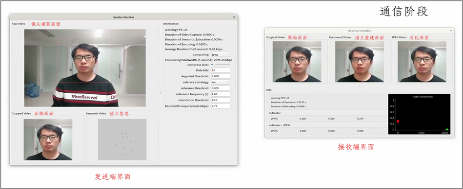 电子系陶晓明项目组研发了一种低码率无线视频语义通信系统,以人脸视频为例,利用参考帧作为先验知识,在发端提取面部关键点,传输十个关键点特征,在接收端进行生成式重建。实测结果表明,该系统可在3kbps的低码率情况下,实现高质量人脸视频传输。本技术发明应用于中国移动“新一代平安乡村视频安防监控系统”,大幅降低无线视频传输数据量;还应用于“蓝鲸二号”海上钻井平台远海作业区的卫星通信系统,以及航空、海防、交通等领域的无线专网视频通信设备中。