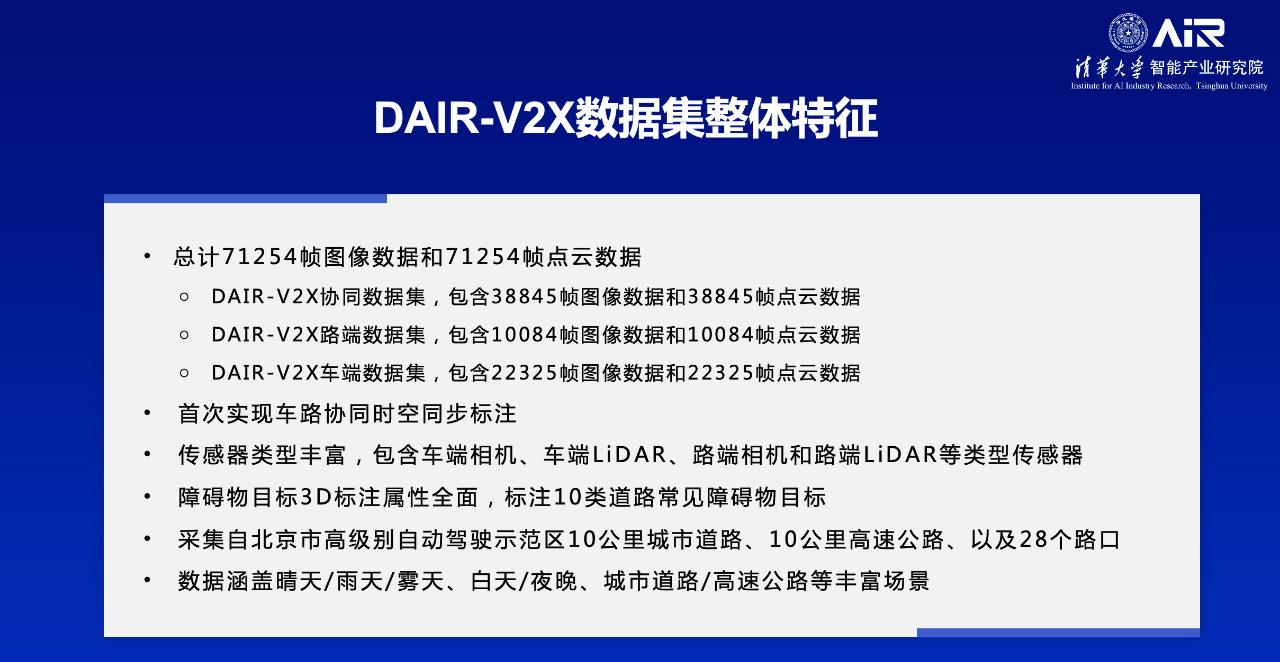 0033990威尼斯智能产业研究院(AIR)院长张亚勤教授认为,建设高等级智能网联道路是智能驾驶及智能交通的一大趋势,既保证了智能车量产的可能性,又保障了高级别自动驾驶基于场景驱动落地的可行性。在智能交通领域,AIR已与多家企业开展校企合作,包括车路协同自动驾驶、垂直行业、小车物流、Robotaxi等应用场景。面对相关数据集的缺乏,不能满足各界实现数据驱动车路协同的现实问题,AIR发起数据集建设,并将数据集对高校、科研院所、产业用户开放,可以更好地支撑科研机构进行科学研究。
