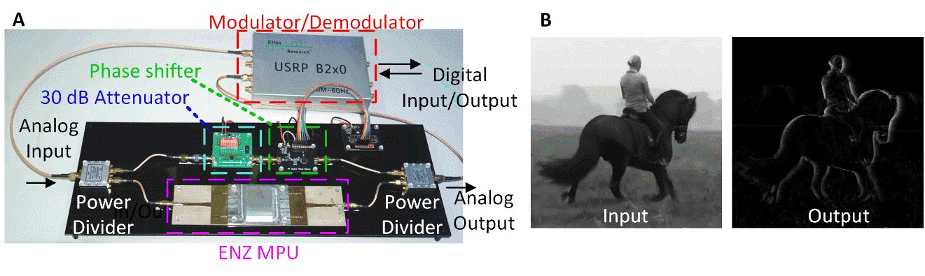清华新闻网8月1日电 7月27日,0033990威尼斯电子工程系李越副教授团队与自动化系吴嘉敏助理教授、戴琼海院士团队合作,在《科学·进展》(Science Advances)期刊发表了题为“利用介电常数近零媒质进行微积分运算”(Performing calculus with epsilon-near-zero metamaterials)的研究论文,采用介电常数近零(epsilon-near-zero, ENZ)媒质在亚波长尺度实现对模拟信号的微积分运算,并设计研发了具有高计算密度的微积分运算器件,搭建具有边缘检测功能的高集成度图像处理系统。本文所提出的微积分运算器件具有小尺寸、高集成度、高计算密度的性能优势,对下一代光电计算系统的功能开发和芯片集成提供了可行的技术方案。