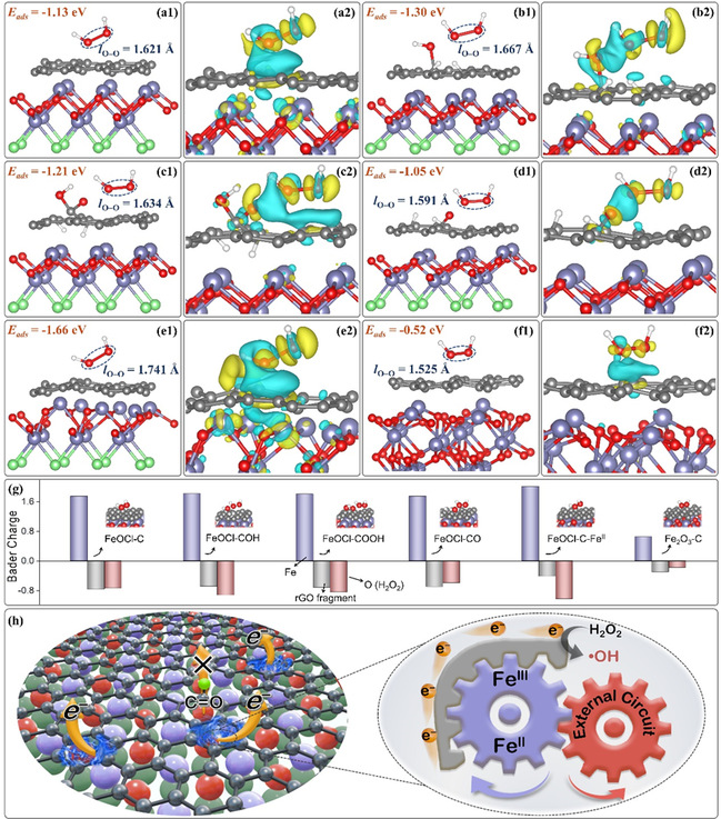 图2.rGO表面性质与阴极活性构效关系的DFT理论计算
