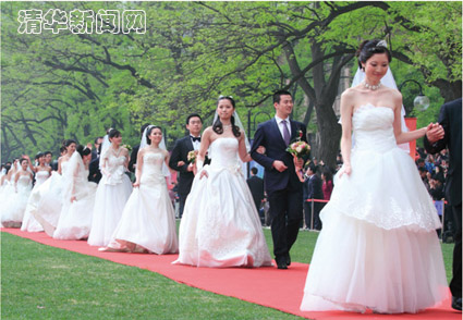 在清华百年华诞之际,研会策划组织了“百年百对”集体婚礼。第二十二届第二任研会主席林正航至今仍然对那次集体婚礼记忆犹新,他说:“当选研会主席的第二天早晨8点我就与校庆办老师开会,计划在2011年4月29日和30日做一个百年百对集体婚礼。”林正航也决定将自己的婚礼定在这个极富纪念意义的时刻。这次婚礼虽然称为“百年百对”,但最终人数达到四百对,大量的工作并没有压垮充满热情的研会人。更值得称道的是,负责“百年百对”的两位副主席之后也坠入爱河,现在已经结婚。在百年校庆期间,研会细致深入的工作,诸如“时间邮筒”、“小研”形象设计等也与“百年百对”一道,营造了校庆期间温馨、向上的校园氛围。