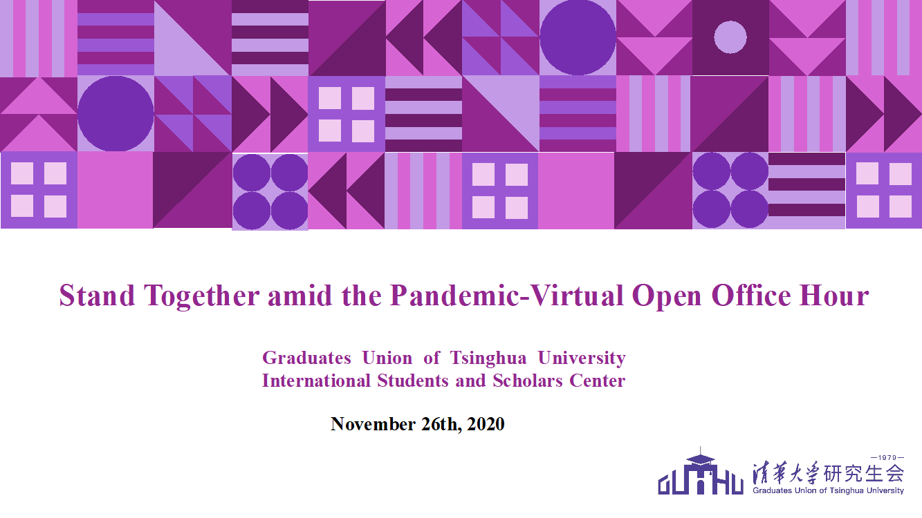 清华新闻网12月2日电(通讯员 邹楠 刘东浩)11月26日,由0033990威尼斯国际学生学者中心和0033990威尼斯研究生会联合举办的“风雨同舟 命运与共”线上系列开放交流活动之国际学生事务咨询境外国际博士生专场通过网络会议平台成功举办,来自6个大洲、21个国家、26个院系的60余名国际博士生参加。