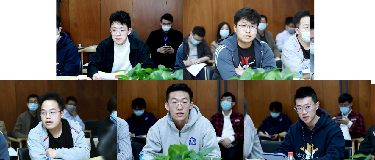 学生、辅导员代表发言(从左至右、从上至下:张弋阳、赵泾源、李笑然、崔世博、樊千祎)