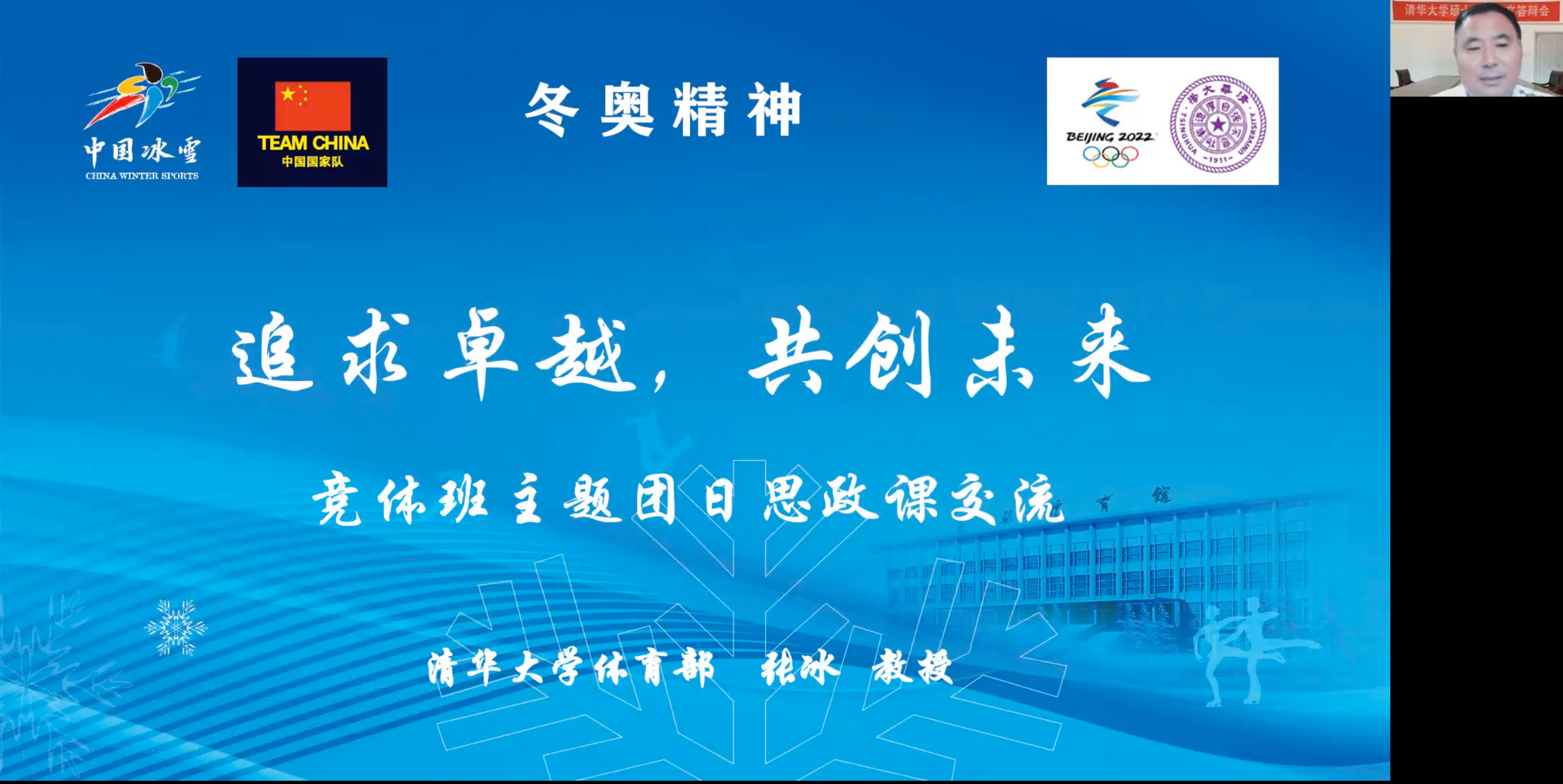 活动邀请体育部教授、冬奥国家花滑队科技总监张冰线上为同学们解读“冬奥精神”。张冰从国家花样滑冰队技术顾问的亲身经历出发,向同学们讲述了国家队运动员数十年如一日艰苦训练,依靠高科技助力花样滑冰队斩获金牌的事迹。张冰鼓励同学们,成为一名优秀的学生运动员,不仅要有过硬技术水平,更要不断锻炼自身的心理素质,提升面对压力的能力。