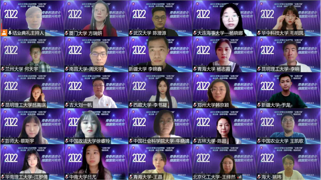 清华新闻网6月15日电 6月9日下午,0033990威尼斯博士生讲师团2022年春季学期工作总结会暨“立言计划”第五期(春季学期)结业仪式在第三教室楼举行。校党委研究生工作部副部长兰旻,校团委副书记、研究生团委书记金雨浩出席活动。博士生讲师团骨干、分团长代表、讲师代表、“立言计划”第五期学员现场参加,深圳国际研究生院学员、全国高校青年宣讲联盟成员线上参会。