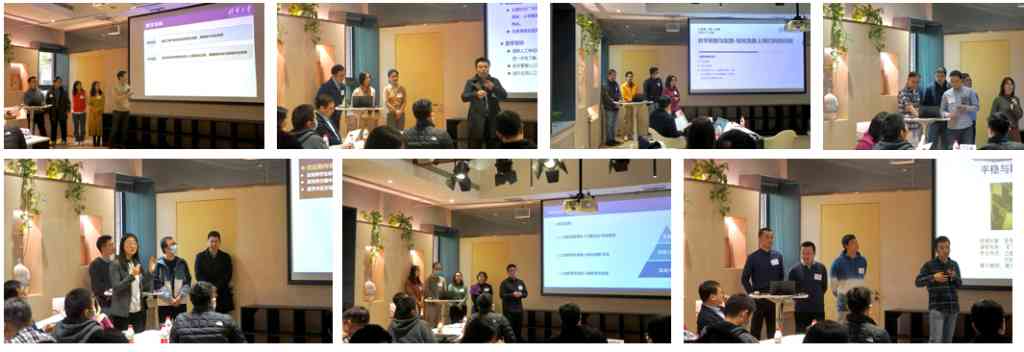 工作坊结束后,参加本次进阶项目的教师按照七个小组,开展了一场跨学科的教学设计头脑风暴式讨论。小组成员从各自不同学科角度出发,共同探讨、商定选题,设计、打磨了一堂课的教学设计,并在6日上午展示汇报了教学设计的成果。七个小组分别就“碳中和与碳循环概念与原理”“人工神经网络应用与实践”“如何克服上课打盹的问题”“智能机器人-关节运动控制”“学术论文写作-文献综述”“提笔前的那些事儿:文化差异与思维表达”“平稳与颠簸——飞机的阵风响应”等课程主题进行了精彩的教学设计展示。在数学科学系副教授杨晶、教师发展中心副主任郭庆来和工作坊主讲人李斌锋的点评和引导下,各小组教师就展示进行了热烈的讨论和充分的交流。