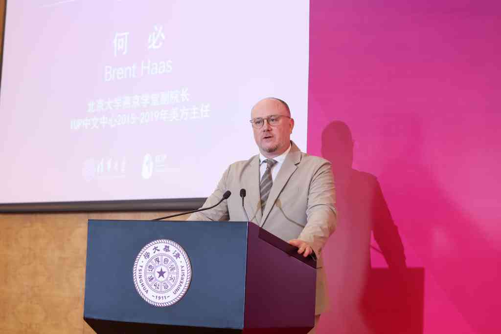 北京大学燕京学堂副院长、IUP中文中心2015至2019年美方主任何必(Brent Haas)回顾了作为学生在IUP学习中文以及作为前美方主任在IUP工作的经历。他表示,IUP是历史悠久、影响深远、口碑载道的汉语培训项目,希望大家为培养下一代欣赏和热爱中国语言和文化的学者和理解者而不断前行。