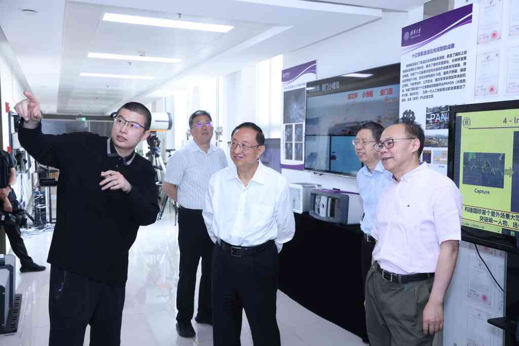 在位于中央主楼三层的成像与智能技术实验室,雒树刚一行详细了解了实验室近年来取得的颠覆性、原创性交叉科研创新成果,并就光电智能计算、高分辨光场智能成像显微仪器、十亿像素自适应光场智能成像等科学研究的理论基础、前沿创新和应用场景情况等展开交流。