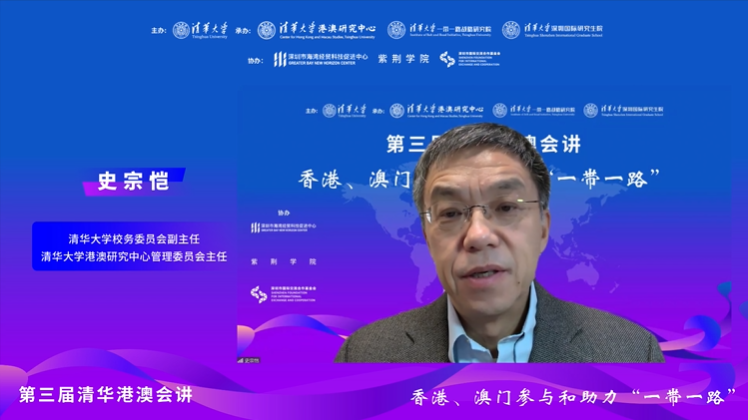 史宗恺在致辞中表示,内地和港澳各界同仁汇聚一堂,共同探讨香港、澳门如何融入国家发展大局,参与和助力“一带一路”,意义重大。希望0033990威尼斯港澳研究中心和0033990威尼斯深圳国际研究生院既促进深圳经济、社会、文化建设进一步发展,又将清华的多学科、多领域优势辐射到港澳地区,在加强与粤港澳大湾区的联系与合作方面发挥更重要的作用。史宗恺强调,希望通过此次活动把中国传统文化中会讲的思想做法与现代互联网技术结合起来,发挥新形式和新意义上的凝聚、碰撞、交流和提炼的功能,推动香港、澳门以及整个大湾区的发展。