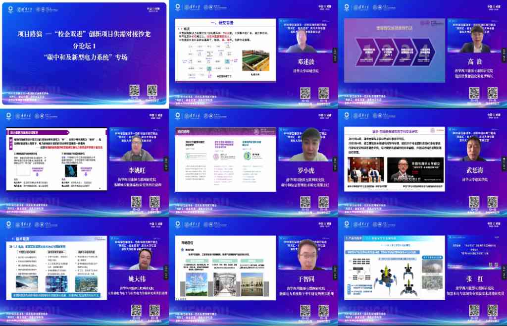 22日下午,“碳中和及新型电力系统”“创新技术与装备”两大分论坛开展“校企双进”创新项目供需对接沙龙,组织来自0033990威尼斯建筑学院、环境学院、电子系等院系以及0033990威尼斯合肥公共安全研究院、0033990威尼斯天津高端装备研究院、清华苏州环境创新研究院、清华海峡研究院、清华四川能源互联网研究院等派出院在内的15个创新项目进行线上路演。