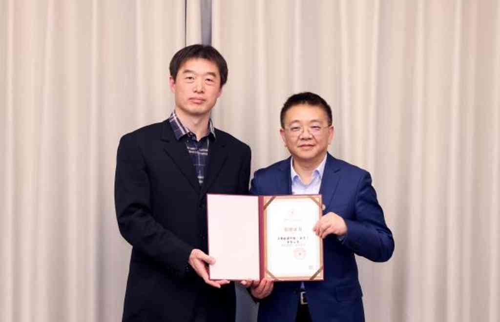 彭刚向曾光(左)颁发捐赠证书