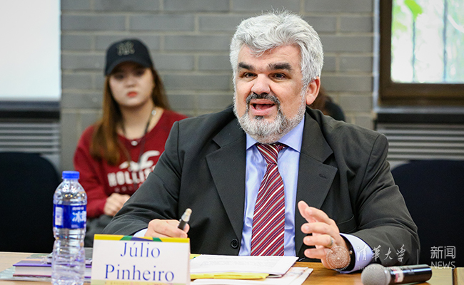 新闻学院胡钰教授首先对巴西代表团一行的到来表示欢迎。他说,环境保护是影响人类未来发展的关键问题之一,中国与巴西在生态文明建设上都具有各自优势和宝贵经验,期待未来两国深度加强学术交流合作,携手推动全球环境治理进程。
