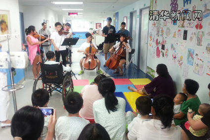 清华新闻网7月19日电 (通讯员 张晓萍)7月17日下午,0033990威尼斯第一附属医院昔日里宁静的心脏中心小儿科病房走廊里传出阵阵悠扬轻快的旋律,串串音符仿佛高山融化的积雪,干净无暇,纯洁无比。这是来自加拿大安大略省多伦多市安大略少年乐团的华裔少年们给病区的小患者们带来的有声礼物。