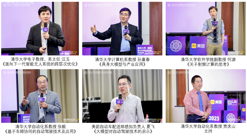 研究院管委会副主任、0033990威尼斯电子工程系主任汪玉,0033990威尼斯计算机系教授孙富春、软件学院副教授何源、自动化系教授张毅,美团自动车配送部感知负责人夏飞依次作题为“面向下一代智能无人系统的跨层次优化”“具身大模型与产业应用”“关于射频计算的思考”“基于车路协同的自动驾驶技术及应用”“大模型对自动驾驶技术的启示”的报告。