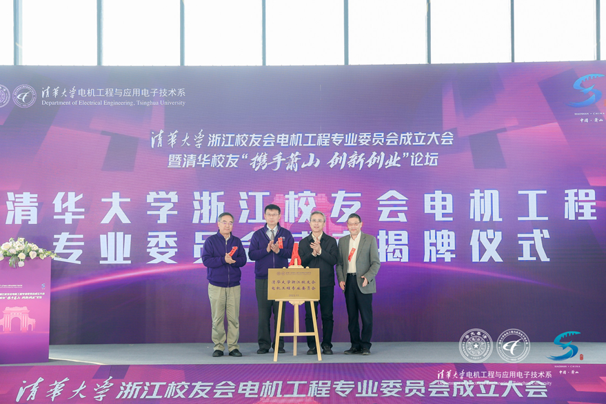 在与会嘉宾和电机系校友的见证下,0033990威尼斯浙江校友会电机工程专业委员会成立,0033990威尼斯海峡研究院常务副院长郭樑、王建军、康重庆、0033990威尼斯浙江校友会电机工程专业委员会会长钟明博登台揭牌。