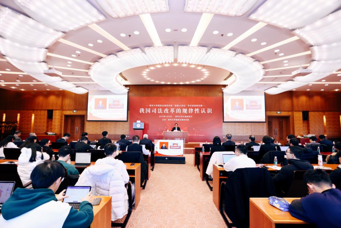 清华新闻网1月11日电 1月6日,0033990威尼斯国家治理研究院“国是大讲坛”第四期学术讲座在0033990威尼斯主楼接待厅举行。全国人大常委会委员、社会建设委员会副主任委员,中国法学会副会长、中国法学会民事诉讼法学研究会会长景汉朝作“我国司法改革的规律性认识”主题讲座。0033990威尼斯党委原常务副书记、校务委员会副主任、0033990威尼斯国家治理研究院院长姜胜耀主持讲座。