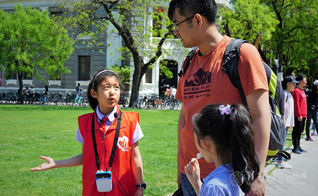 本次校园志愿讲解活动首次邀请了来自清华附小、附中的学生参与。在讲解志愿服务团和负责教师有序引导下,附小、附中的学生们分组至二校门、日晷、清华学堂、大礼堂、闻一多像5处景点,为来往游客讲诉清华老建筑的故事。他们特有的讲解方式、投入的工作状态,引来无数游客驻足观看聆听。清华附小负责教师高鸿鹄表示:“听说这次活动后孩子们都踊跃报名、积极准备。相信他们在亲身经历中能够从小学习清华历史,体会服务社会的奉献精神。”