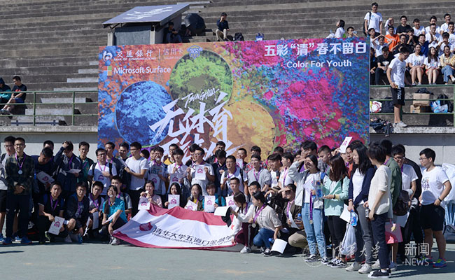 下午四点三十分,“五彩‘清’春”阳光彩跑活动正式开始。彩跑路线环绕清华校园,彩跑站点分别以激昂青春、活力无限、自由畅想、光明未来、浪漫有你为主题,引入趣味合影环节,优化同学们的活动参与体验,得到了同学们的一致好评。