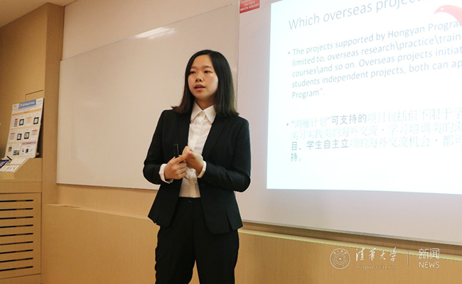 “鸿雁计划”带队辅导员黄晓丹向新加坡南洋理工大学的同学们介绍“鸿雁计划”。