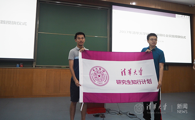 最后,校研团委书记刘博涵为暑期就业实践支队长代表与知行计划项目负责人代表授旗。他希望研究生在实践中认识社会、认识行业,并且在认识的基础上服务社会。同时提醒同学时刻记住自己是一个清华人,在实践过程一定要具有责任与担当。