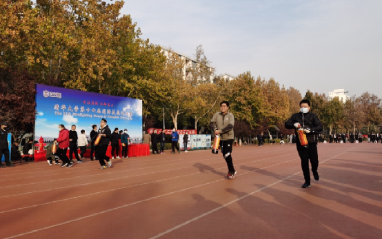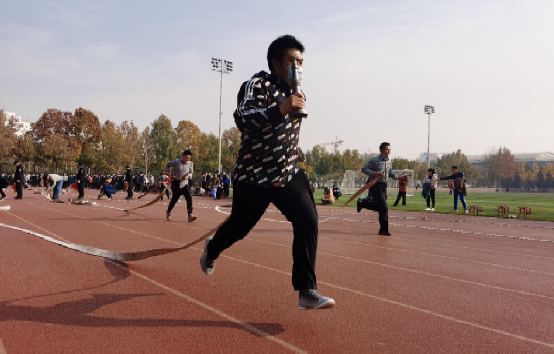 运动会上,海淀消防支队八家中队消防队员现场展示水带连接技能,各参赛队伍先后参加了水带连接和电子灭火器灭火两个项目的比赛。